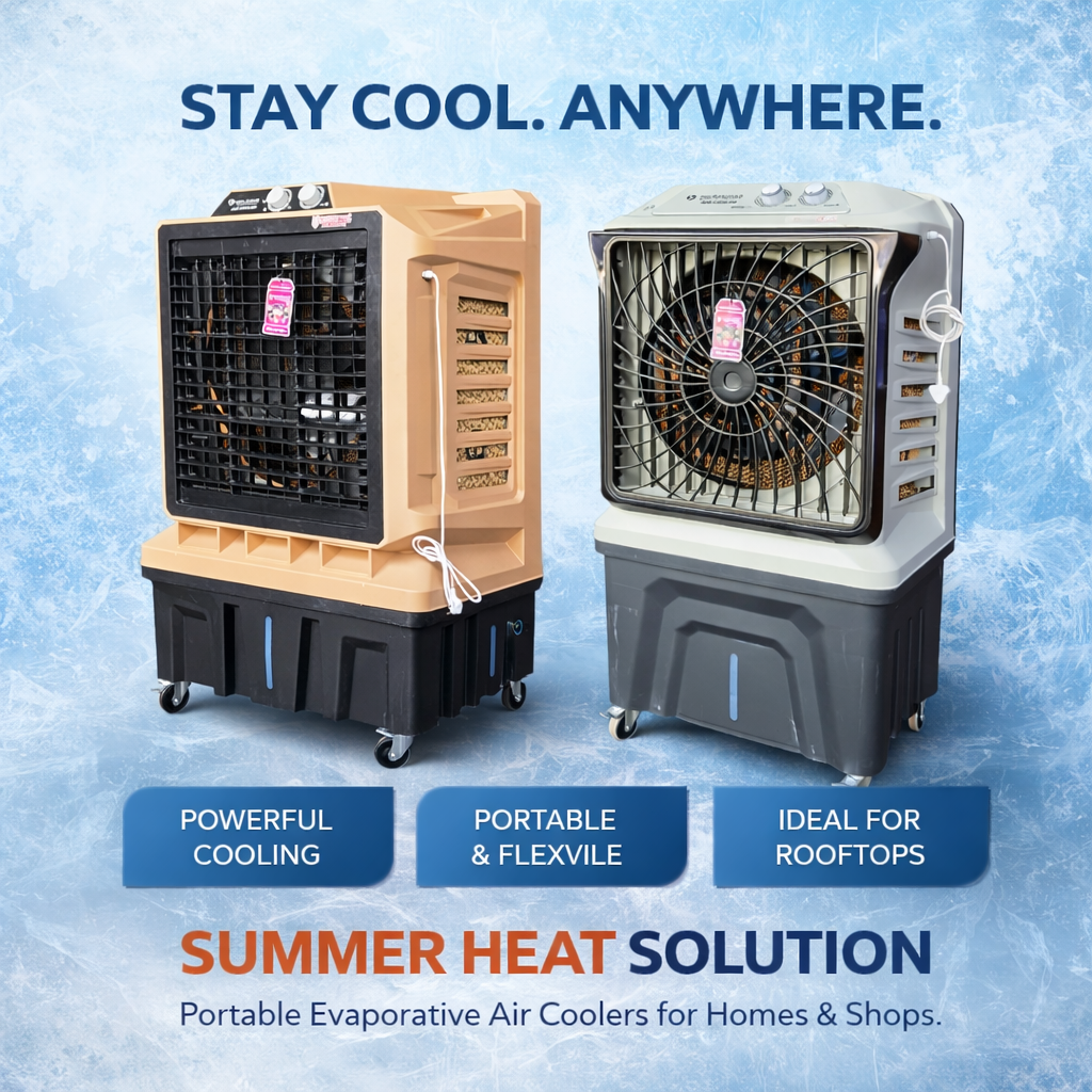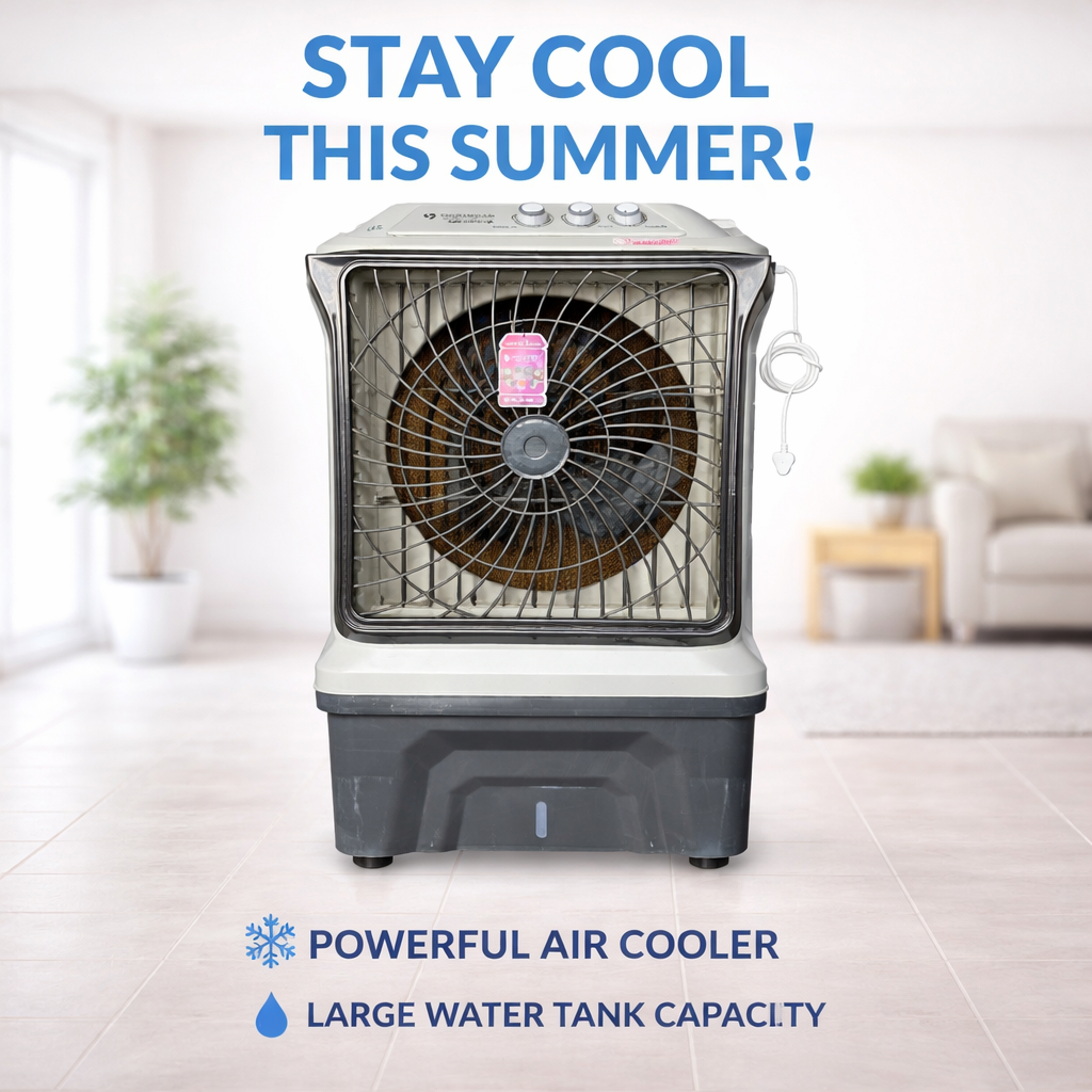 Stay cool this summer with our high-performance air cooler designed for powerful and consistent cooling. Featuring a large water tank capacity, it ensures long-lasting operation without frequent refills. Ideal for homes, offices, and outdoor spaces, it delivers strong airflow to keep your surroundings comfortable. Its energy-efficient design helps save power, while smooth mobility allows easy placement anywhere. Experience reliable cooling and enjoy a refreshing environment even during the hottest days.